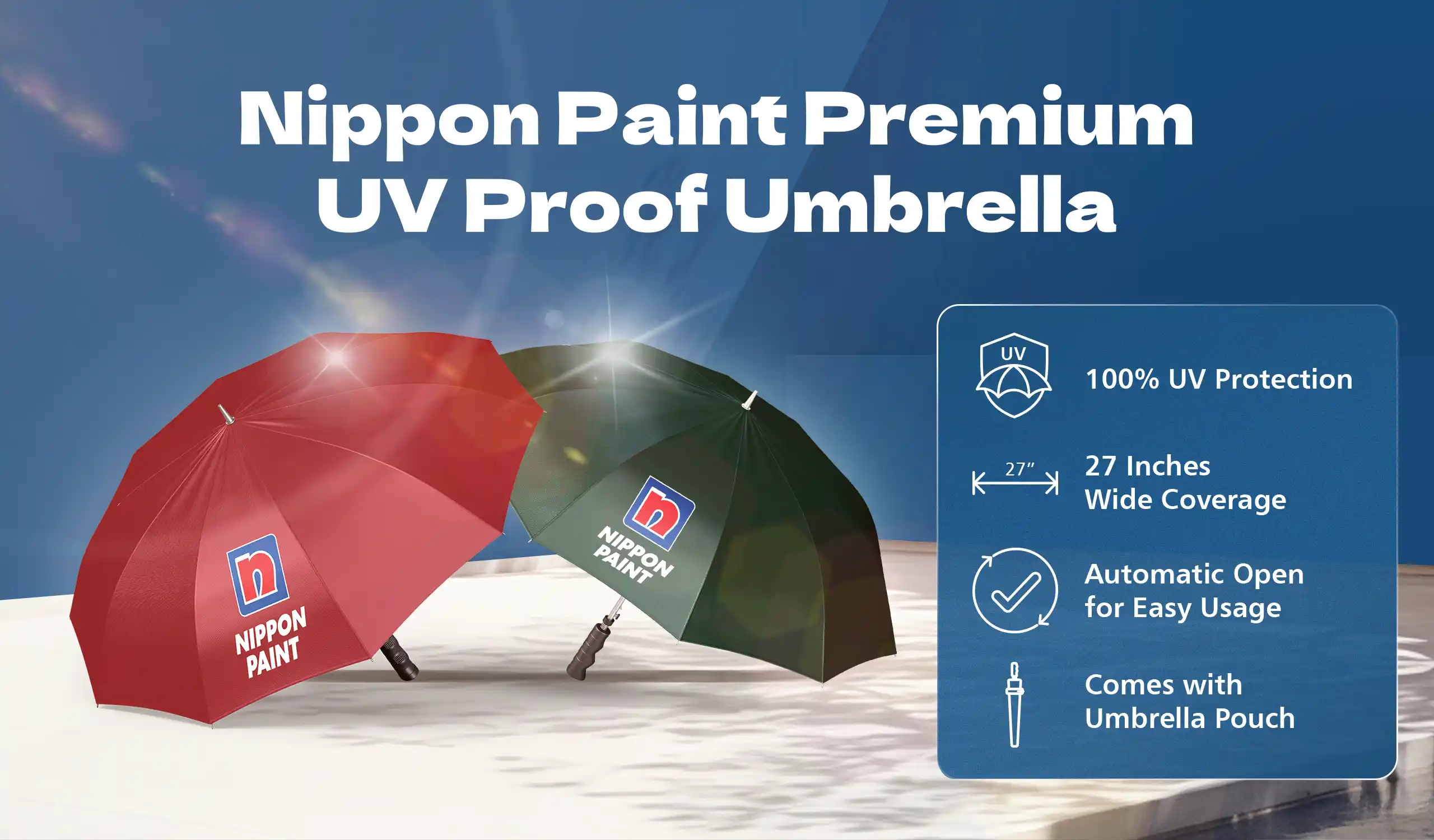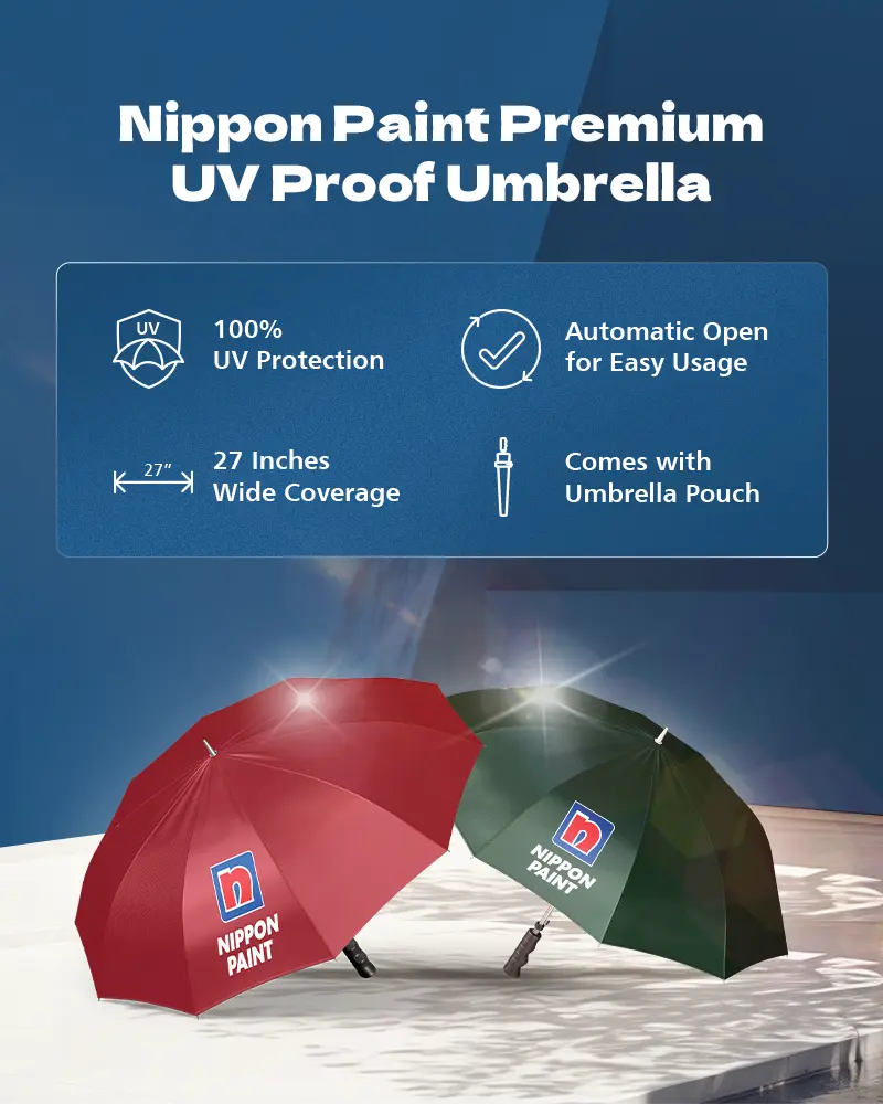 Offering superior UV protection and ergonomic handle grip, Nippon Paint’s premium UV Proof Umbrellas are the perfect addition to your home.